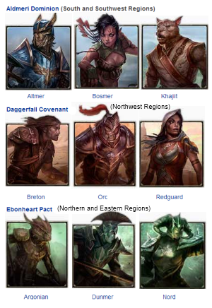 Your choice of race coincide with your choice of Faction in ESO. Choosing the Ebonheart Pact brings the races of Nords, Dunmer, and Argonians. Choosing the Aldmeri Dominion brings the races of Altmer, Bosmer, and Khajiit. Finally, the Daggerfall Covenant brings the races of Bretons, Redguards, and Orcs.