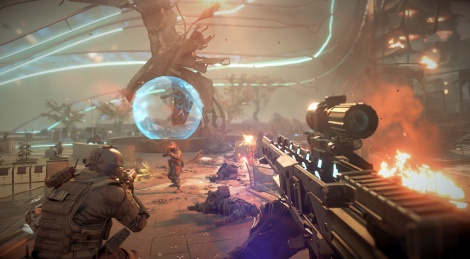 Showing off a live demo of the game now, Killzone: Shadowfall looks simply beautiful on the PlayStation 4, The games colors are popping beautifully. I just saw a man shoot a young woman who was screaming in pain and then another soldier. This looks insane. This looks amazing. The blues are popping exceptionally well in this game. It’s all very neon future looking. They just shot some sort of charged sniper shot then converted the gun back into a regular LMG. Sick! He just did a Dishonored-style drop assassination, very awesome! It all seems very fluid and responsive, being that it’s a live demo (it is, right?).