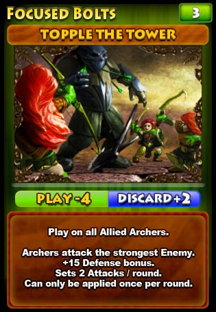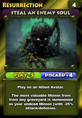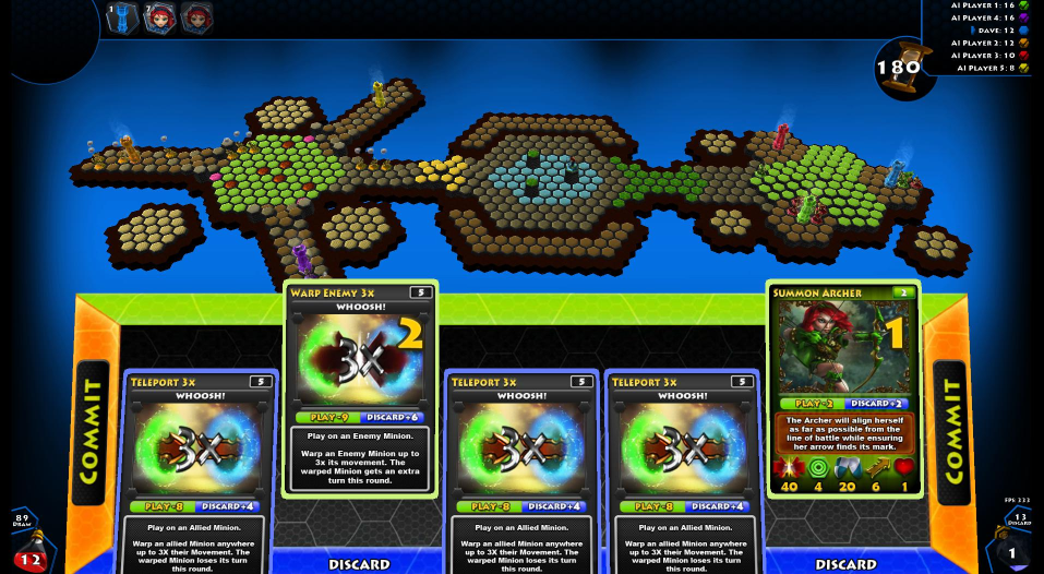 The basic gameplay is as follows. You have a deck of virtual cards that you have built for matches. During a match you will receive five of those cards at a time. Each one of the cards has a “Play” and “Discard” point value. When you discard a card you are then able to use those points towards summoning another.