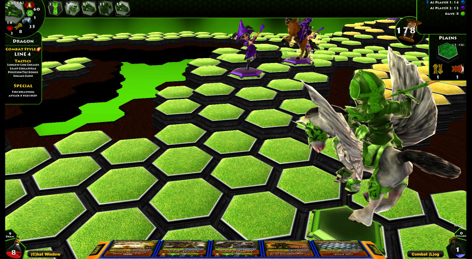 After this I was taken through the level and deck building modes. Building a level is reasonably straightforward; you build land with a bunch of hexagons. There are several tools as well, to help make sure your sides are balanced and for giving the level some horizontal variety. The card building too is quite simple. Every card has a specific point value. That point value goes into your overall points for a deck. Decks can vary in point restrictions based on how you and your opponent want to play. Want to play a match with only 50-point decks? How about one with 200? Even on the same field your play style can change drastically with higher or lower restrictions.