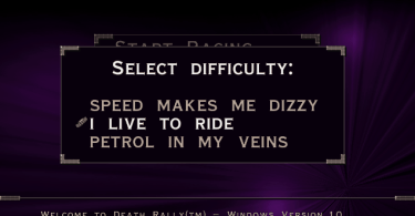 Death Rally is a racing game played from a top-down perspective. Graphically speaking I was not expecting much, but was surprised to see that despite the top-down view the game used, the environments were rendered in quasi-3d. This gave most of the game’s tracks a surprisingly good sense of depth. If you’ve ever played the 2D Grand Theft Auto Games, you’ll be familiar with this style of graphics and you’ll feel right at home playing Death Rally. The controls handle the same, with the car rotating but not the camera. Those unfamiliar with this style may find themselves driving in circles until they get the hang of it. Players race around the track while attempting to impede other racers. Over time you can customize your vehicle with a number of weapons and upgrades to tip the scales in your favor.
