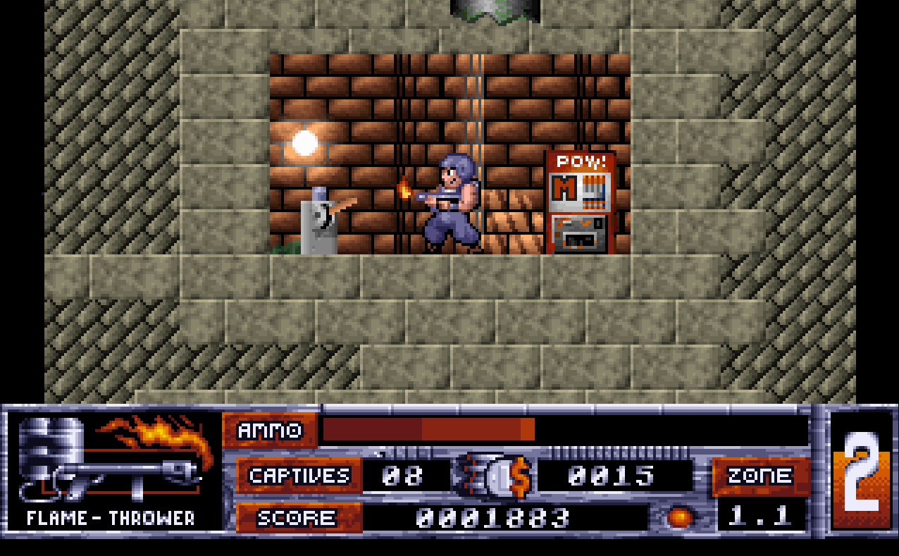 Shoting wise, you get five shots before you go ammo-less, and collecting more ammo is a chore due to the fact that you’ll have to kill yourself with the hotkey before getting to an area with an ammo box. The only upside to this whole experience is that you don’t run out of lives, so you can keep going through this cycle until you decide to close the DOSBox window.