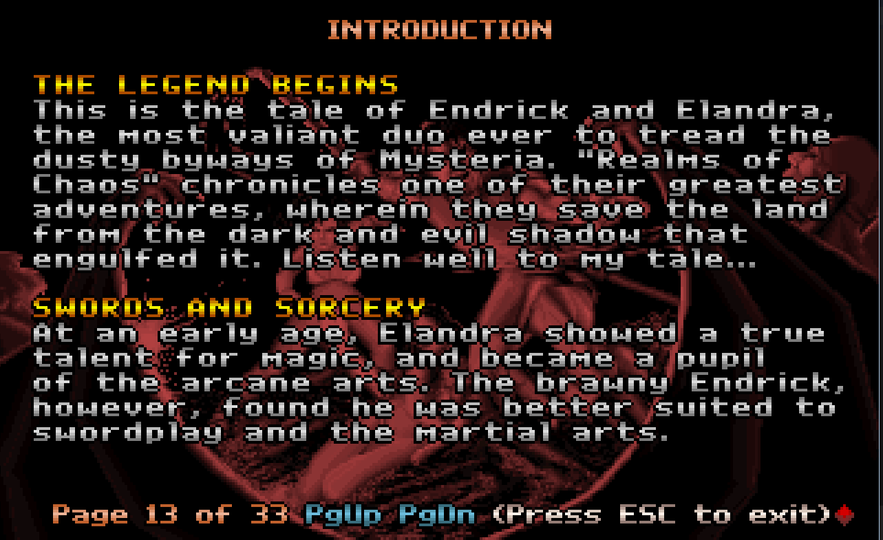 Realms of Chaos caught me by surprise. I started playing it without reading into the controls or story (shame on me!) and found out partially through the first stage that you actually play as two characters at once!