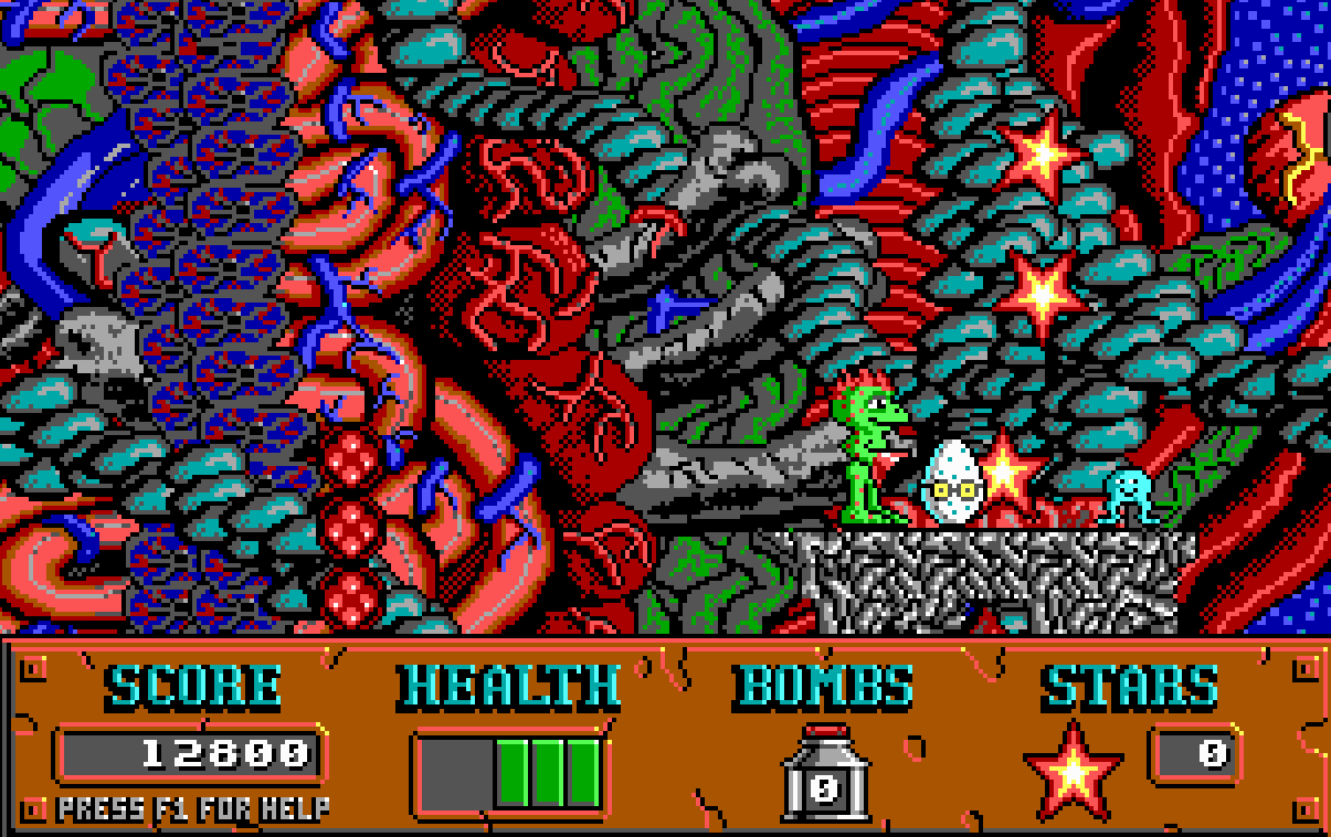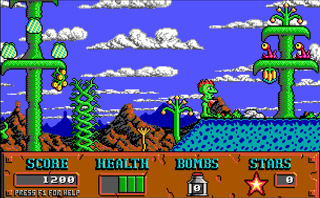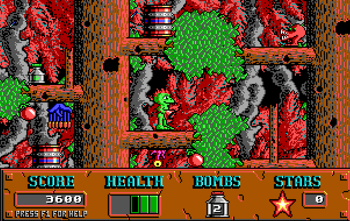 I’d say avoid this one for that reason. The platformer plays solid, but it’s just hard to see. This was not uncommon back in the days of DOS gaming, and this title, sadly, fell prey to that trend.
