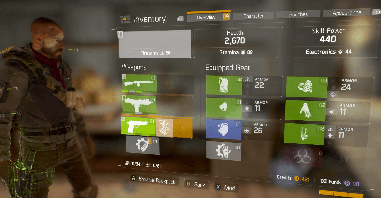The game is primarily a cover-based third person shooter. Anyone familiar with past Tom Clancy games should feel at home right away in terms of control scheme, and with that comes added RPG elements that work well within the confines of the play style. You can upgrade your weapons with mods like scopes and muzzles, as well as swapping them out for higher-rated gear as your character levels up. Skills, Talents, perks, and buffs are placed into three categories that correspond with The Division’s three subdivisions, all which can be leveled up as you slowly work your way through the city’s missions. You’ll augment your weapons with crafted attachments or purchased upgrades, and just about everything can be broken down into component parts and used to make something else later. Missions reward you with loot of all types, including consumables and clothing, which allow you to further customize your agent.