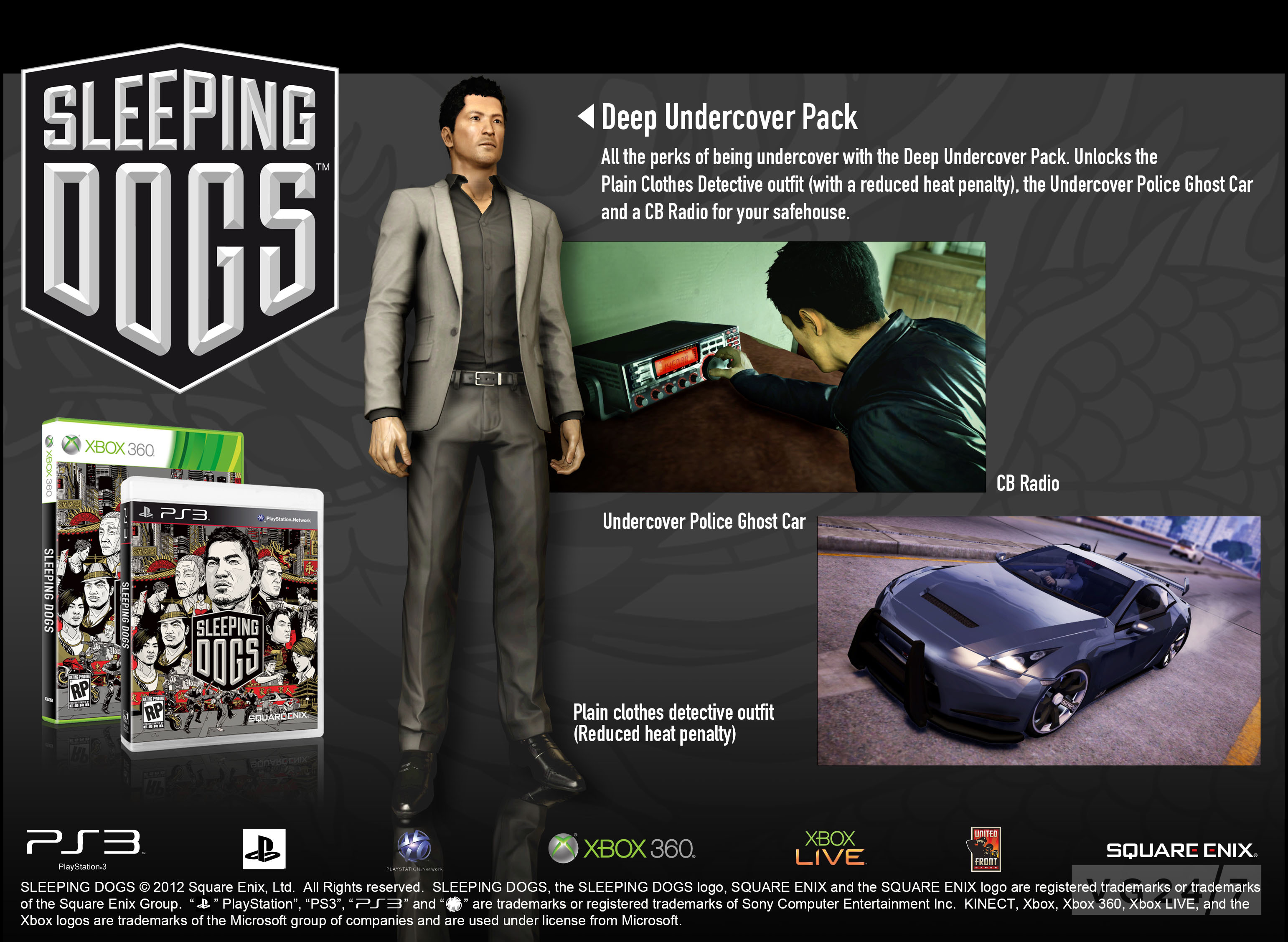 Sleeping Dogs is releasing content to players that was previously only available to those who had select pre-orders. Now all gamers will have access to the multiple packs and skins that other have been raving about. In addition to being able to dress their character like the infamous Agent 47 or outfit them with the Sarif Industries armor made famous by Deus Ex players will have multiple packs to choose from including: