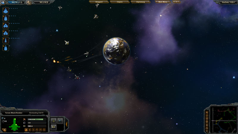 Planetary Bombardment: Planetary bombardment is another way of taking over an enemy planet. Planetary bombardment may only be done tactical nukes. The larger the ship, the larger payload they’ll carry. You’ll need multiple ships with big payloads in order to deplete a planetary shield. Then you need to keep bombarding the planet in order to kill off the inhabitants.