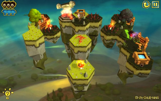Hairy Tales includes an easy to understand tutorial that lead players through the initial levels. Each stage offers multiple solutions allowing players to flex their brain muscles and exercise their creativity. While initial levels can be configured before the Hairy starts running, later stages include multiple tile types, ranging from helpful teleporters to deadly spikes that require the player to quickly react by re-arranging items including cannons and traps during the Hairys run.
