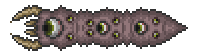 In my personal opinion the Eater of Worlds is by far the easiest and weakest of all the bosses. A giant worm that is summoned underground by shattering Shadow Orbs or crafting worm food. During the battle the Eater circles the player and dives deep underground. Slashing the middle of the eaters body can cause it to split into multiple pieces but even then this giant worm poses little threat to players, even though his head does 40 damage. Between the head, body and tail the Eater of Worlds only has a total of 435 HP and can be killed relatively easily with the weapons available to players in this portion of the game. The Eater of Worlds will drop silver coins, Lesser Healing Potions, 20-60 Demonite Ore and a random amount of Shadow Scales.