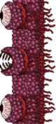 The Eye of Cthulhu is the first boss in normal mode that poses a serious threat to our players life. In his first form the Eye does only 15 damage, but he does spawn help in the form of the Servants of Cthulhu. Once players get past this stage the Eye becomes even more deadly. He transforms with the eyeball turning into a gaping jaw complete with a set of razor-sharp teeth. In this second form the Eye deals 23 damage but has no defense whatsoever. It is recommended that players be prepared with healing potions and at least a set of silver armor before attempting to take on the Eye of Cthulhu. The Eye provides some pretty sweet loot too dropping between 30-87 Demonite Ore, Lesser Healing Potions & Unholy Arrows. The Demonite Ore is the best of all the loot because this is the place that players can find the most Demonite Ore.