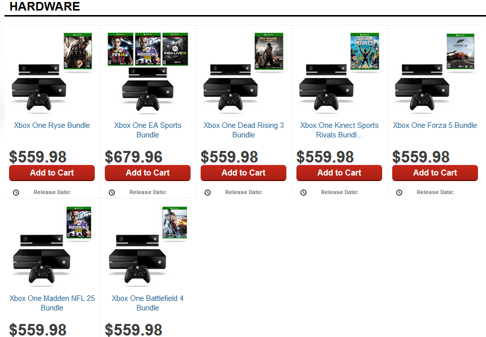 The Xbox One will launch with seven different game bundles this November when it launches along with 8 launch titles, according to GameStop. Launching with the Xbox One will be Ryse, FIFA 14, Madden 25, NBA Live 14, Dead Rising 3, Battlefield 4, and Forza 5.
