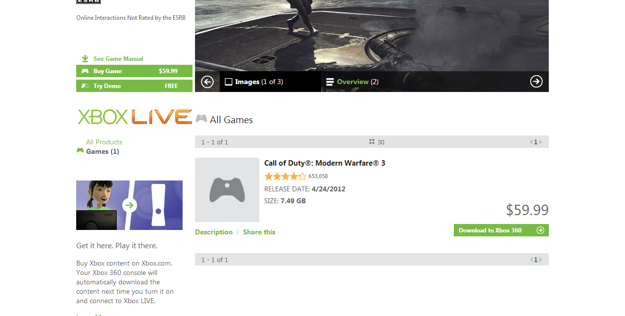 Right now if you look around the Xbox Live Games on Demand Marketplace you’ll see tons of great older games like Halo: Combat Evolved, Blur, Halo 3, Halo: Reach, and many other games you could find in your local GameStop for under $20 for sale for near full price. Modern Warfare 3, a game that already is outdated by it’s sequel, is a full $60. Are you kidding me?