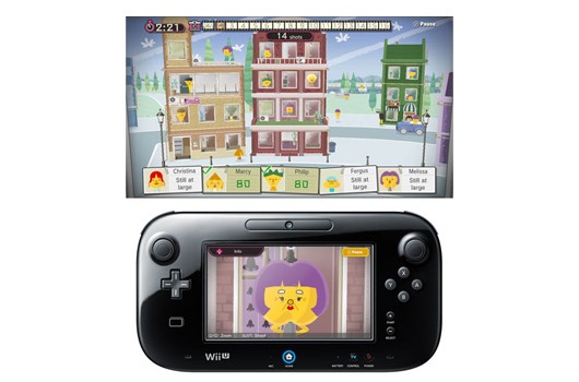 The first game was called Shutter. As pictured above, the goal of this game was to take pictures of five targets. I was judged based on how much each target was in frame, whether or not I zoomed in, or how focused the picture was. The Wii U GamePad is the camera. While the TV gives you a view of your entire playfield, the GamePad features what you would see in a camera lens, a close up view of what is on the TV. You would move around the GamePad to move your camera around, zoom in with the left analog stick, and press ZR (right trigger) to snap a photo. The controls felt very natural and I got the hang of them within seconds. Looking at the TV screen, I would try to find my target. Some were easy to find while others moved around or hid very well. When I found my target, I would quickly swing the GamePad to the direction of my target and try to snap my photo. It really felt like I was moving around an actual camera. Shutter makes amazing use of the GamePad and allows for experiences like this to be a reality. I had four minutes to find the five targets. If I found them all before time was up, I could go back and retake photos to boost my score. I could also try to find hidden characters in the environment that were worth extra points. Overall, I really enjoyed Shutter. This is one game that definitely shows off what makes the Wii U GamePad unique